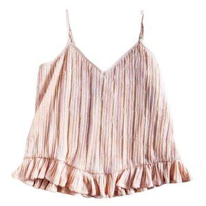Anthropologie Amelie Sequin Beaded Cami Tank Peach Pink Ruffle Hem Sz 2