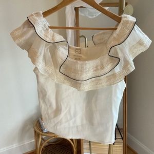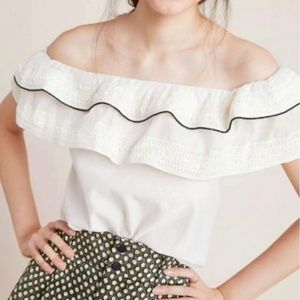Anthropologie Amit Aggarwal Organza Ruffle Blouse, Size Medium, White, Gently Worn, 70%Cotton/30%Poly, Ruffled detail, Off the Shoulder, Pullover.