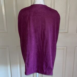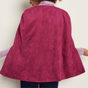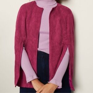 Anthropologie Andersen& Laura fuchsia poncho/cape. Front slits for arm opening. Faux suede. Fully lined. One size. 18” across shoulders. 23” across body. 27” shoulder to hem. Excellent pre owned condition