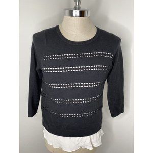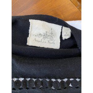 Anthropologie Angel of The North Sweater Sz Small Black Crochet White Shirttail
