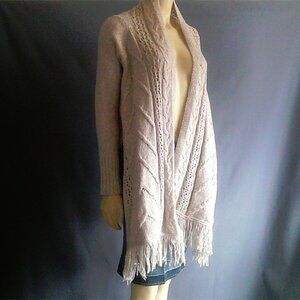 Anthropologie Angel of the North Anais Gray Hi Low Cable Wool Nylon Cardigan Sm
