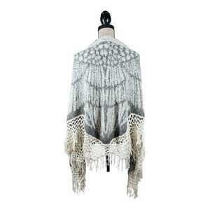 Anthropologie Angel of the North Angel Wings Boucle Wrap Poncho Cardigan in one size. Wing knit design. Crochet fringe. Body 62% acrylic, 20% wool, 18% nylon. Trim 100% cotton. In great condition.