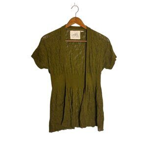 Anthropologie Angel of the North Olive Green Open-Front Knit Crochet Cardigan