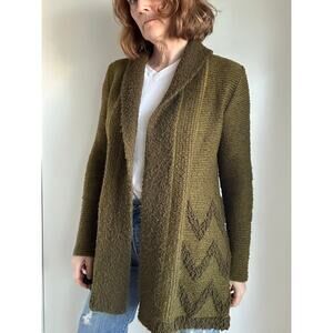 Anthropologie Angel of the North Womens Cardigan Size Large Green Wool Chevron
