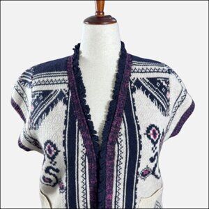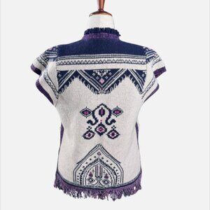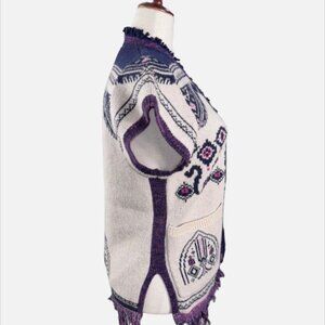Anthropologie Angel of the North Wool Beige Plum Fringe Poncho Vest Cardigan