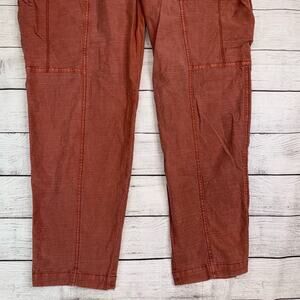 Anthropologie Angela Cropped Utility Cargo Pants Washed Brick Red Size 28