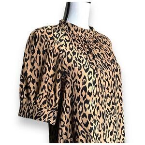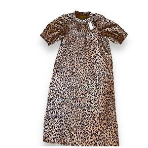 Anthropologie Animal Print Midi Dress Fits Sz XS/S Puff Sleeve Contemporary