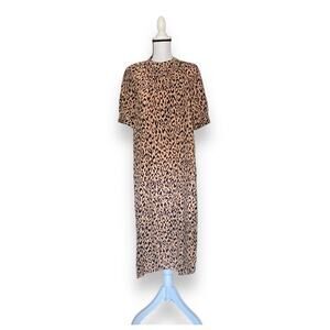 Anthropologie Mckensie textured chiffon/crepe straight line midi dress in a novelty all over leopard print.