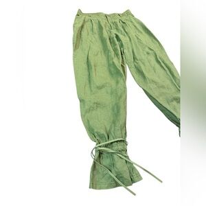 Anthropologie Ankle Tie Linen Trousers in Dark Olive Size 12