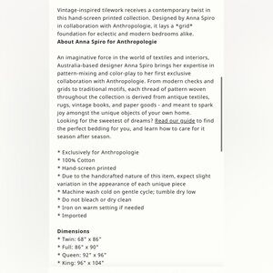 Anthropologie Anna Spiro Tile Quilt Size Queen NEW