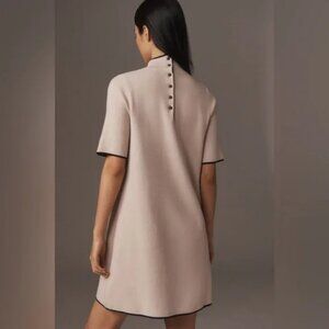 Anthropologie Annalise Mock-Neck Mini Sweater Dress by Maeve Creme/Black Medium