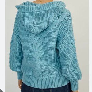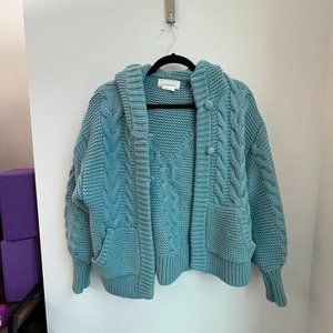 Super cozy blue cable knit cardigan with two button closures. Beautiful colors for spring! In great pre-worn condition. Size xs.