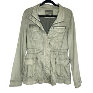 Anthropologie Anorak Utility Military Green Floral Embellished Sequin jacket