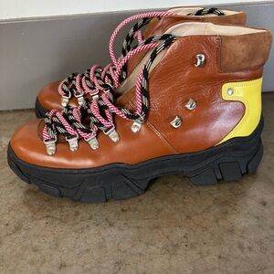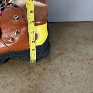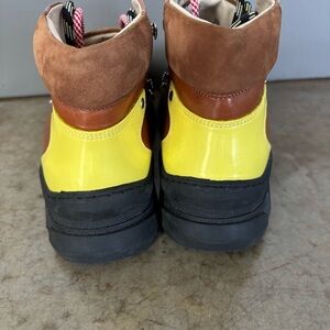 Explore the outdoors with these stylish hiking boots! Fun laces, brown with yellow accent, perfect for any adventure! Excellent condition!