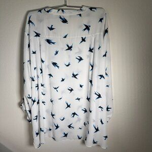Anthropologie Anthology Sheer Blouse with Birds and Roll Tab Sleeves Size US 26