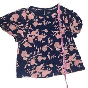 Good, preloved condition. Anthropologie | Anthro Maeve Franca Textured Blouse Short Sleeve sz XS X-Small. All-over embroidery and sweetly textured blooms. Polyester. Embroidered detail. Back button. Pullover styling.