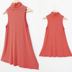 Anthropologie Anthro Puella Mock Neck Rib Orange Striped Swing Tank Tunic Top M