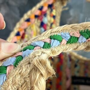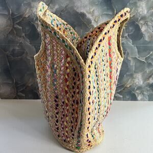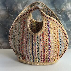 Anthropologie Antik Kraft Woven Jute Straw Recycled Fabric Handbag Multicolored
