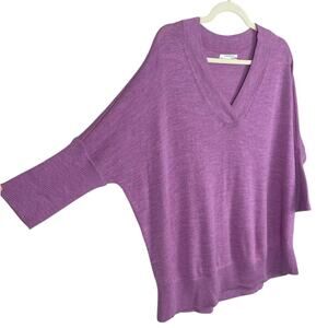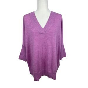 Araminta pullover v-neck sweater. 3/4 sleeves. Oversized. 100% merino wool. Purple. Size medium.