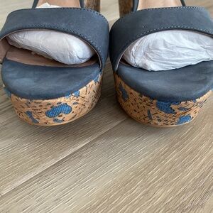 Anthropologie Arden Denim Blue Cork Platform Wedge Leather Sandals Size 9