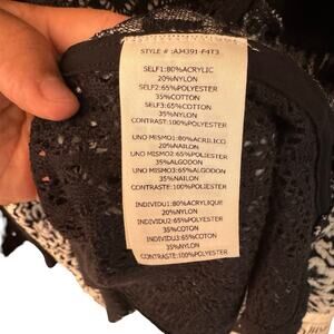 Anthropologie A’reve Cardigan L Black White Lace Knit Boho Open Front Sweater