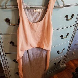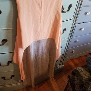 This dress is so unique with the floaty top and fitted skirt. The top is a peachy pink color.
