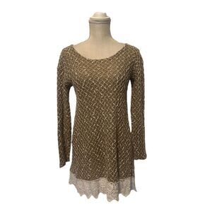 Anthropologie A'reve Sweater Tunic with Lace & Double Bow Detail Size Medium