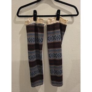 The Anthropologie A'reve Winter/Holiday Over The Knee Diamonds And Snowflakes leg warmers in size M/L are the perfect accessory for the winter season. These multicolor boot toppers feature a festive holiday theme with diamonds and snowflakes, adding a touch of glamour to any outfit. Designed for women, these over-the-knee leg warmers are sure to keep your legs warm and stylish during the chilly winter months.