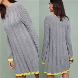 New without tags Anthropologie Arsenau sweater dress. This dress will keep you cozy and warm during the colder months! Extremely comfortable swing style in size small. Grey with yellow border at hem and sleeves. Never worn.