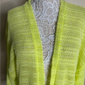 Anthropologie Astrid Open Knit Kimono Cardigan Neon Yellow Green One Size