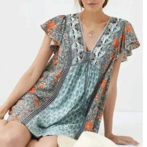 Anthropologie Astrid Tunic Floral Printed Lace Flutter Sleeve Dress