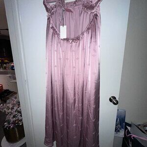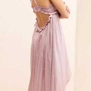 Elegant asymmetrical dress by Anthropologie. Features delicate straps and a soft, flowing design. Perfect for any occasion.