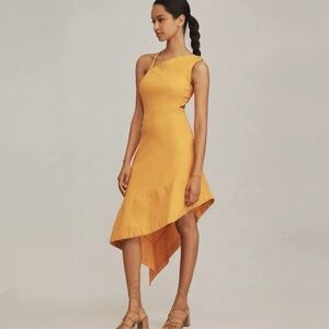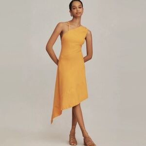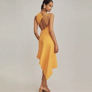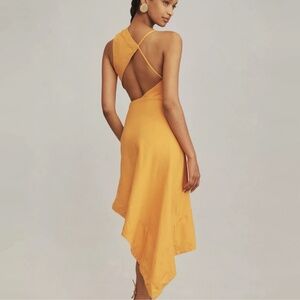 Anthropologie Asymmetrical Open-Back Linen Midi Dress - sz 14 - NWT