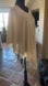 This luxurious knit poncho from Anthropologie features an elegant asymmetrical design with a flowing silhouette. Crafted from a soft ivory knit fabric, it offers a comfortable and stylish fit with its wide neckline large hole sleeve Perfect for adding a touch of sophistication to any outfit. Women’s One Size