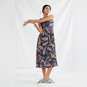 Embrace elegance with this sleeveless dress featuring a vibrant paisley print. Perfect for any occasion. Pit to pit measures 20” Waist measures 34” Length measures 49” Here, dreamy embroidery and a charming paisley motif call to mind laidback days and frolics in the sun. About Atelier 1756 At the soul of Atelier 1756 are founders Maria, Vanessa, and Soad - a mother and two daughters, bonded by a passion for romantic silhouettes, eye-catching hues, and refined textural touches. With the utmost care ensured in every stitch, the assortment serves as a reflection of the family's artistic vision and rich Caribbean roots. Cotton Embroidered embellishment Side slant pockets Midi silhouette Back zip Dry clean
