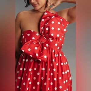 Stunning anthro Atsu bow one shoulder midi dress. Never been worn, With tags attached. Polyester; polyester lining