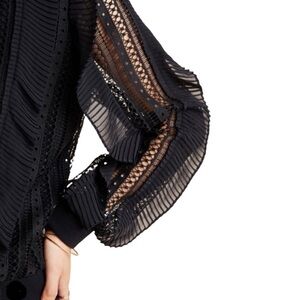 Daniel Rainn Augusta Pleated Ruffle and Lace Sleeved Pullover Top Blouse