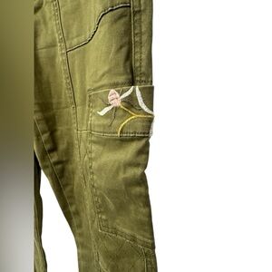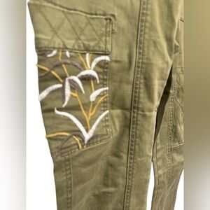 By Anthropologie Floral Embroidered Cargo Pants Sz 27 Green Skinny. Embroidered pockets. Ankle length