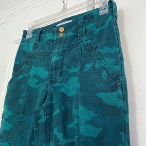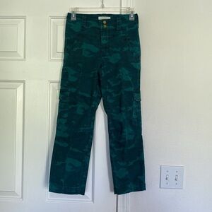 Anthropologie Austin Camo High Rise Cargo Cropped Pants in Green. Size 25. Green is vibrant, pictures don’t do justice. Brass double snap button closure. Fabulous cargo pockets and additional side and back pockets.