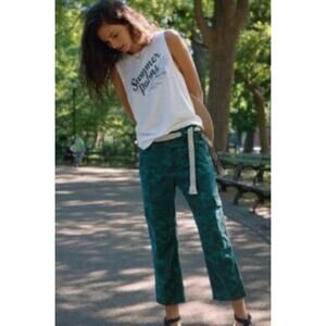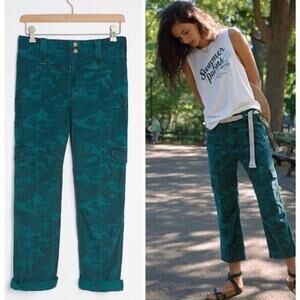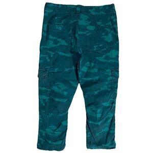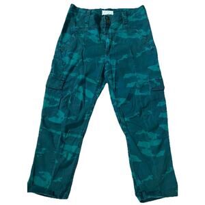 Anthropologie Austin Cargo Pants Women 31 Teal Blue Green Camo Crop Jeans