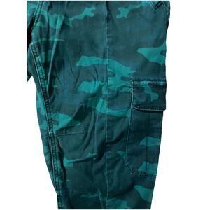 Anthropologie Austin Cargo Pants Women 31 Teal Blue Green Camo Crop Utility