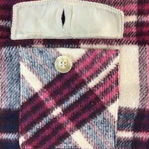 - Description: Autres Filles Cranberry, Navy & Tan Plaid Utility Shacket features: