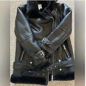 Anthropologie Avec Les Filles Faux Leather Black Pilot Jacket size S