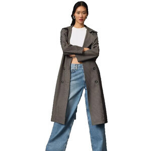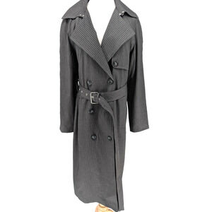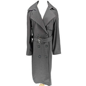 Anthropologie Avec Les Filles Gray Pinstripe Belted Classic Trench Coat Academia