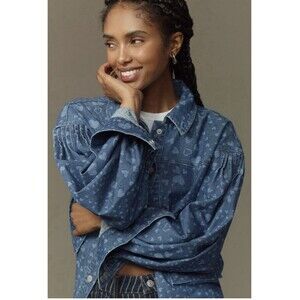 Anthropologie Avec Les Filles Heart Denim Shirt Jacket Sz XS Medium Blue