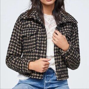 Anthropologie Avec Les Filles Lea Houndstooth Shimmer Cropped Jacket Size L Wool