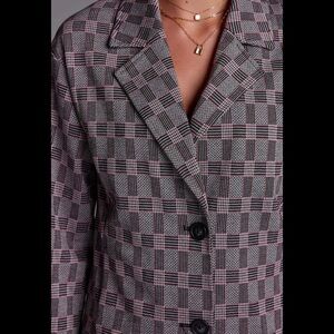 Avec Les Filles Notch Lapel Two Button Longline Plaid Knit Blazer from Anthropologie