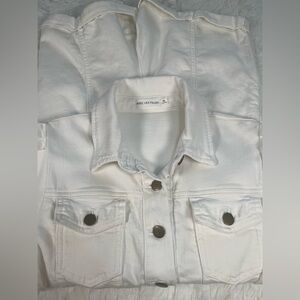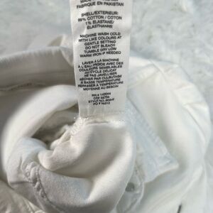 -White denim, often with a slight stretch due to cotton and spandex blend.