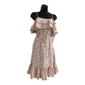 Anthropologie Avec les filles light pink blush polka dot spaghetti strap ruffled tiered belted dress size 2 new