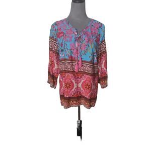 Anthropologie Aziza Top Embroidered Boho Paisely Tie Neck Tassel Cottagecore M